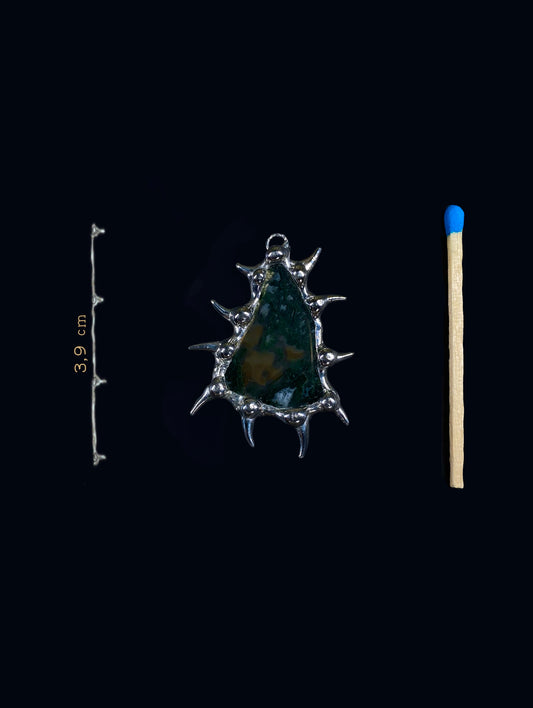Handmade Spiky Montana Moss Agate Pendant – Necklace or Earring