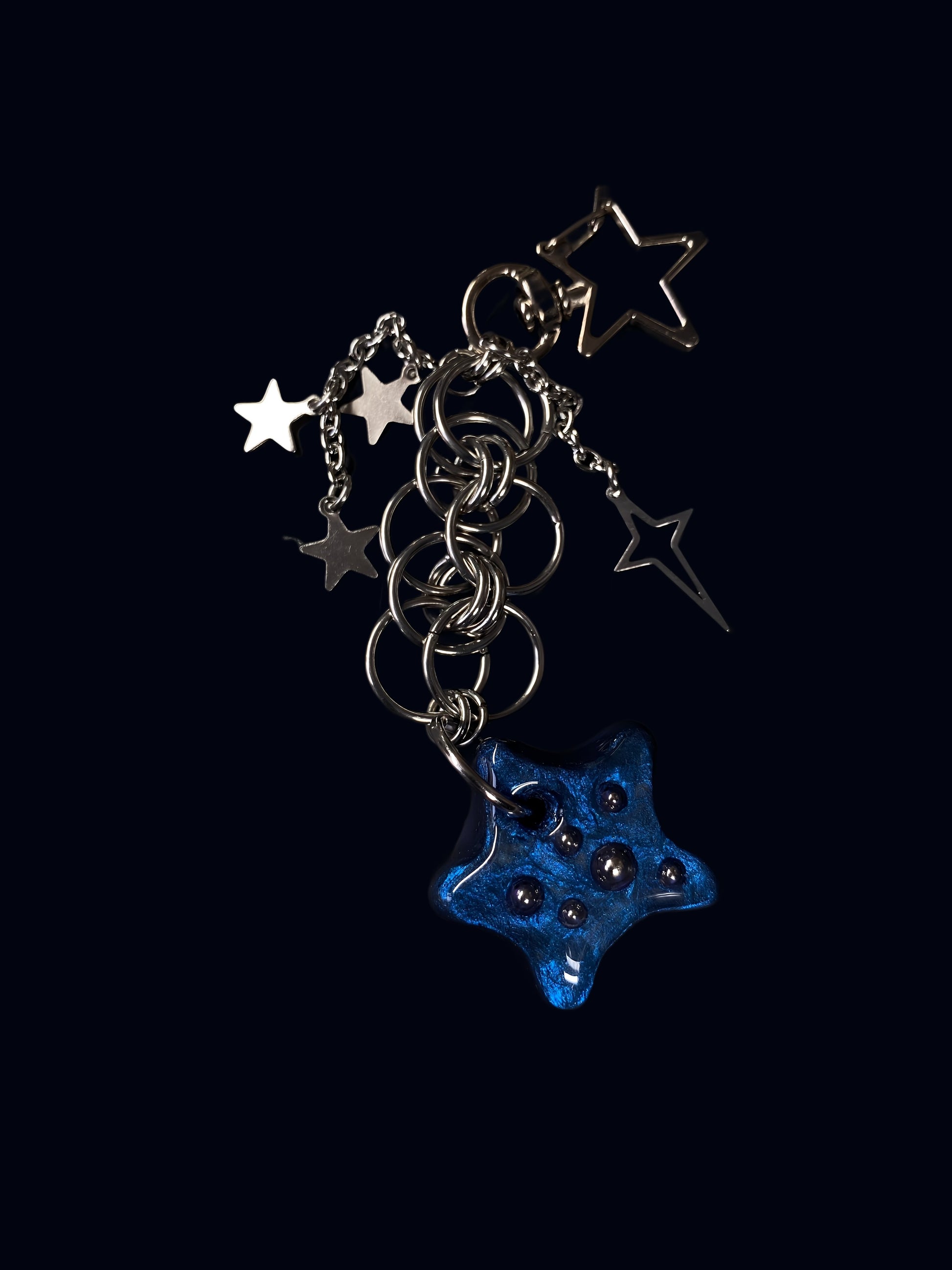 Bold, playful, and one-of-a-kind – this handmade metallic blue star keychain is a sculptural little piece of wearable hardware for your everyday life. Each one combines chunky metal elements with a colourful, punky star that feels like tiny armor for your keys, bags, or belt loops.