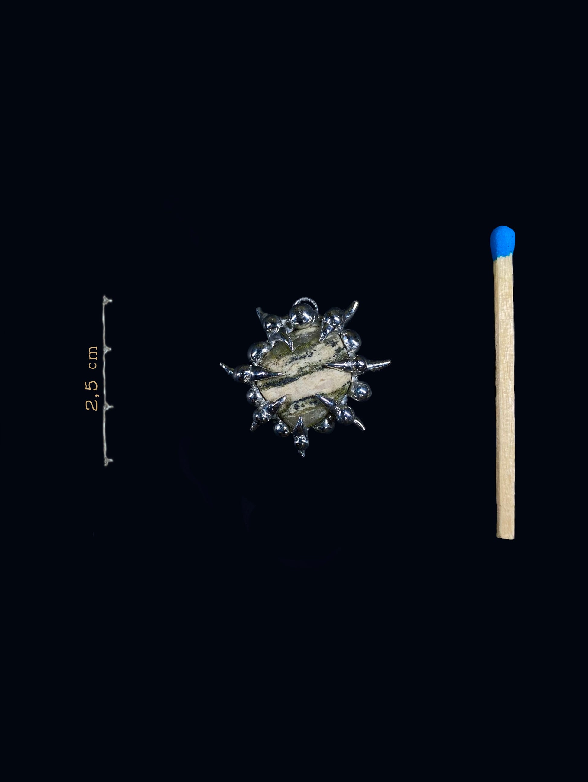A one-of-a-kind Gneiss pendant, handcrafted using a rare soft soldering technique.