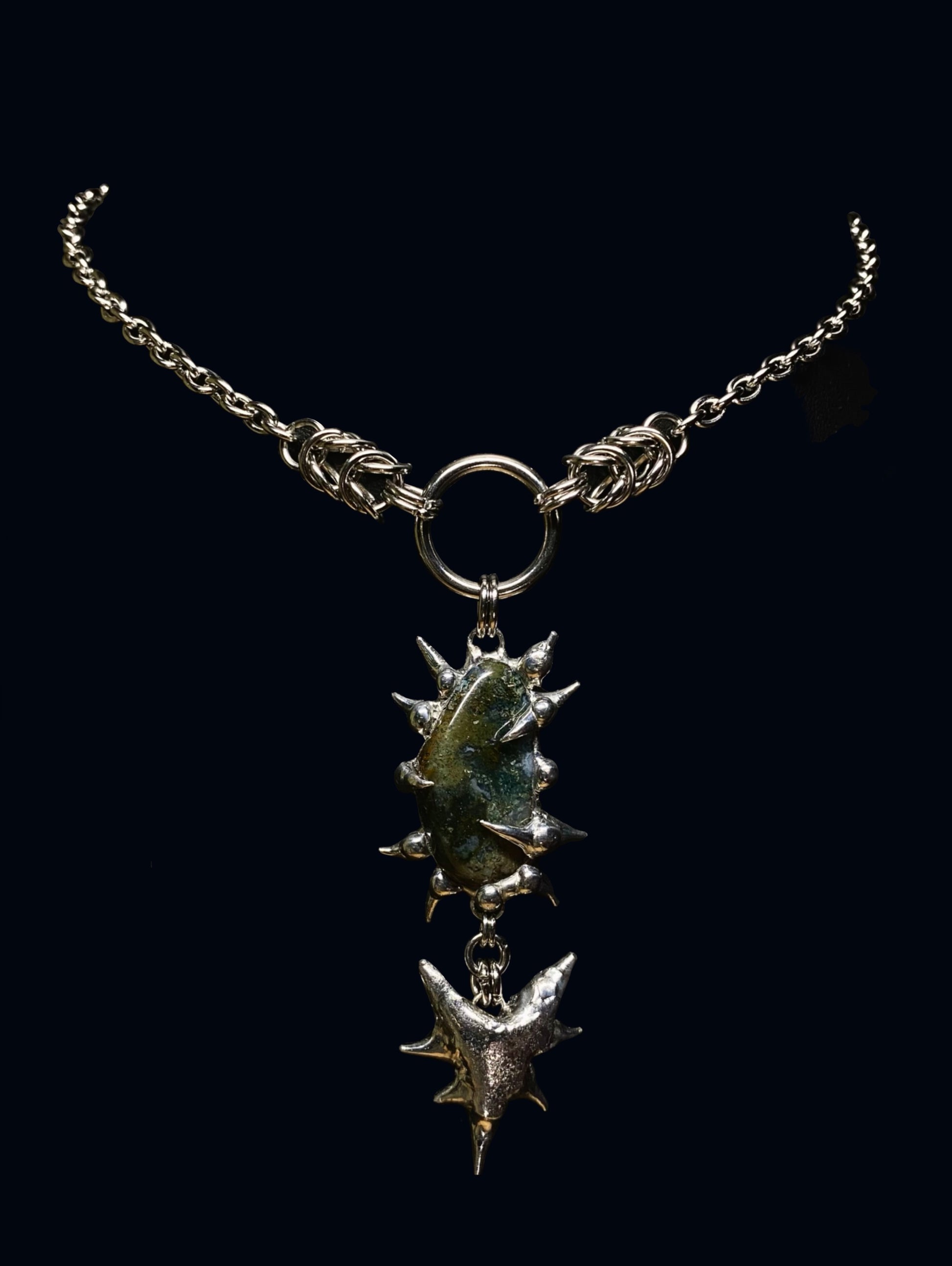 Handmade Spiky Moss Agate Pendant – Necklace or Earring